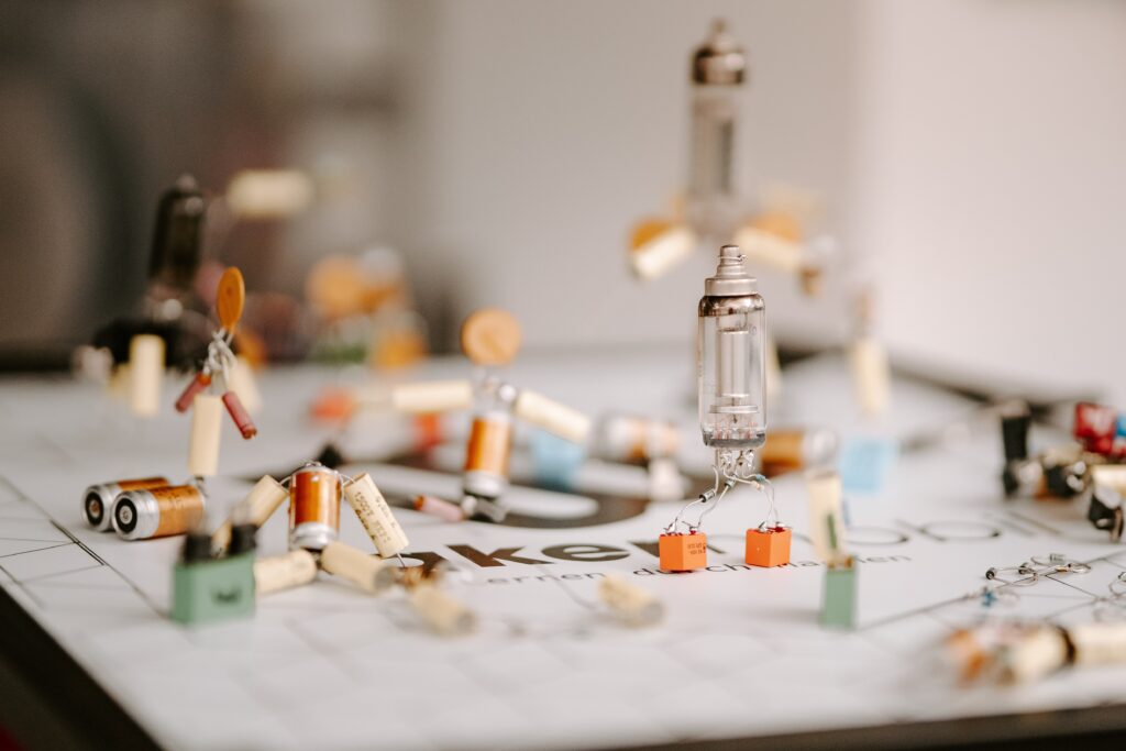- Alle Elektro-Bauteile vor sich auslegen.
